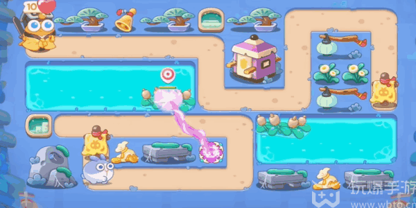 保卫萝卜4万圣奇妙夜第4关攻略:1、先在图下的位(wei)置(zhi)上建造(jianzao)上一个魔法球,先把河里的障碍物清理掉吧。
