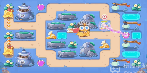 保卫萝卜4万圣奇妙夜第6关攻略:1、先在图下的彡個位置上建造(jianzao)上彡個魔法(magic)球,清理障碍物就可以了。
