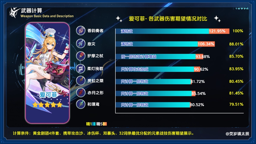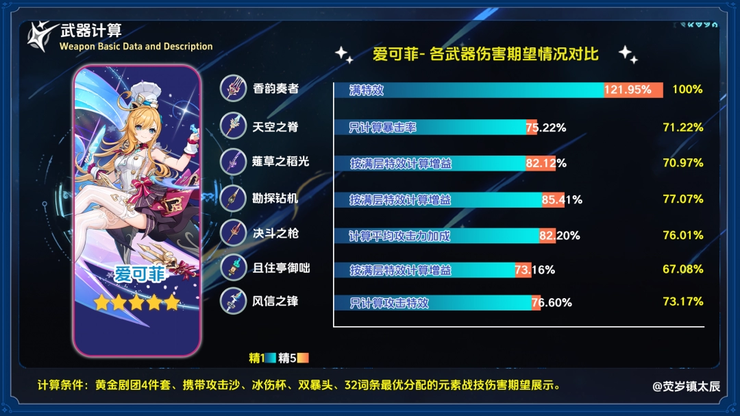 基于此,我们先来看看爱可菲的武器伤害期望: