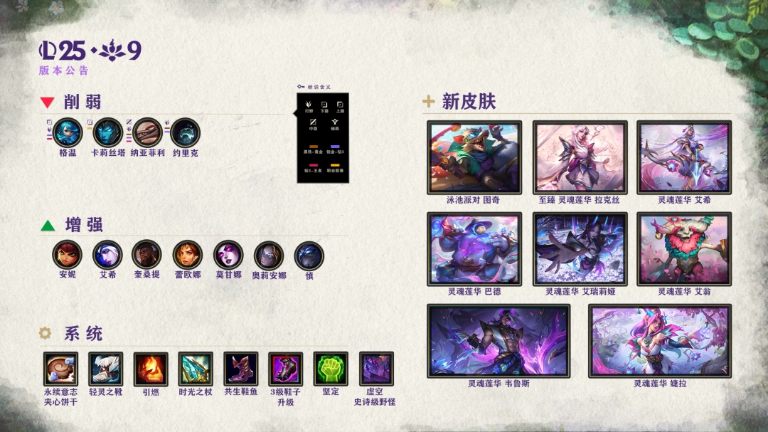 LOL25.9BUG修复分享:你的看法?并且团队开启了第二个主题赛季——艾欧尼亚。这次版本更新有许多英雄进行了调整,还有装备更新,已经bug的修复,还有不少的改动,下面的内容喜欢可以了解一下。