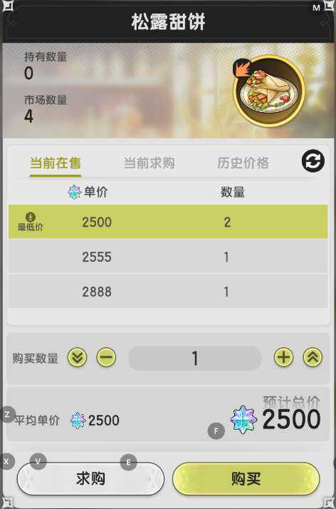 可怜的【松露甜饼】,成本价都没人买。氪佬宁愿花2500去收装备都不(bu)愿意买。