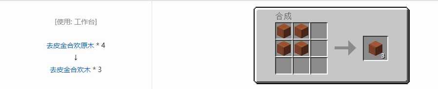 我的世界去皮金合欢木获得方式4个去皮金合欢原木可以获得3个去皮金合欢木,可使用4个对应去皮原木合成获得,每次合成时获得3个,我的世界去皮金合欢木获得方式可用于在合成中替代原木,各位朋友们快来看看吧。