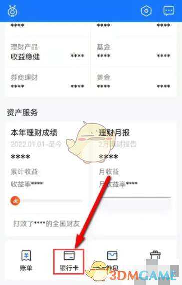 1、在蚂蚁财富资产页,拖拉至底部,点击(click)银行卡图(tu)标進入。