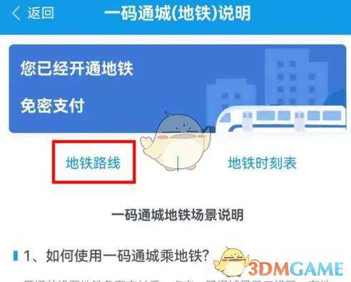 2、进入(jinru)说(shuo)明(ming)页面(yemian),是地铁乘车码的使用方法,点(dian)击(ji)地铁路线;