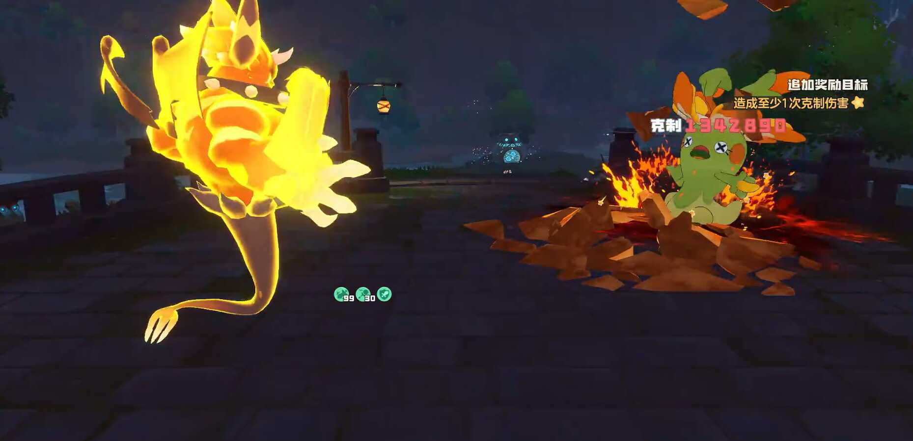 实际战斗中,先安排雪灵上场,先使用热身运动接两次冰束缚来增加首领精灵(jingling)的能耗,让它放不出任何的技能,只会在战斗中不断的使用聚能。这时可将火神换上场,用火苗来为山火叠加伤害(hai),毕竟山火的机制就是(jiushi)精灵(jingling)每用一次(once)火系技能,山火的技能威力将会翻倍,配合上火神本身释放火系技能能加攻的特性,令火神只需多叠几次火苗,就会让山火的伤害(hai)量提升至一个无比恐怖的地步。等各位觉得伤害(hai)叠得差不多了,或是首领精灵(jingling)差不多完成聚能后,就可直接使用山火打伤害(hai),完成核爆瞬秒。若是在非首领战的情况下,也可使用该套路,注意让火神能顺利叠出较高层数即可。