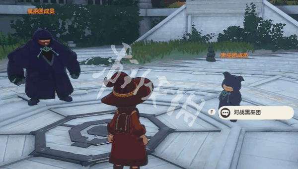 2、走到广场后,点击【对(dui)战(zhan)黑巫团】按钮,就会触发战斗。