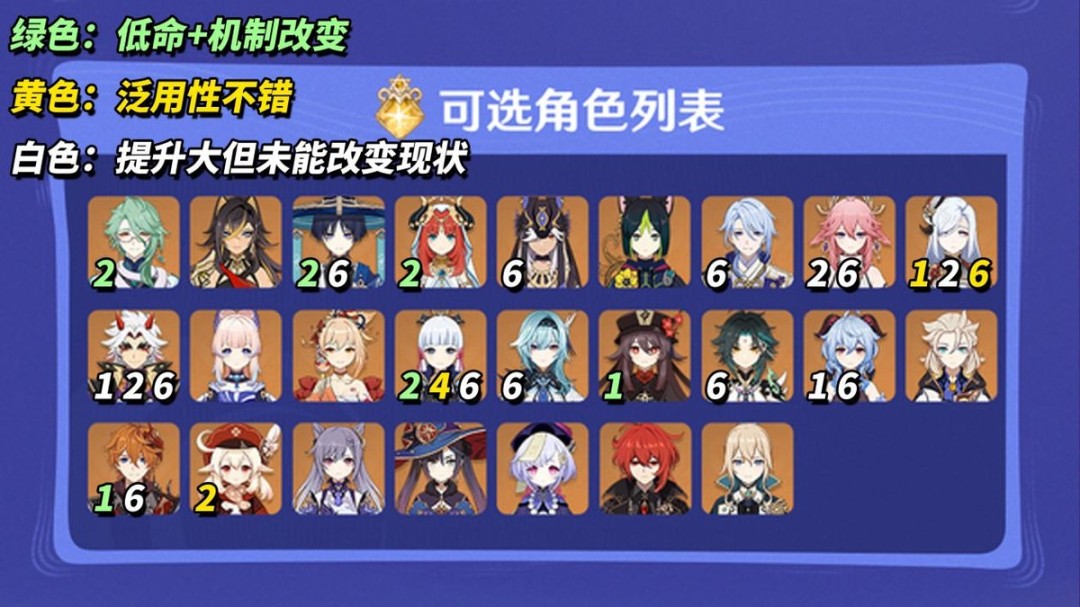接下来则是25位角色(jiaose)关键质变命座推荐,顺序有所变动,已按照冻梨心中的实用优先级排列。