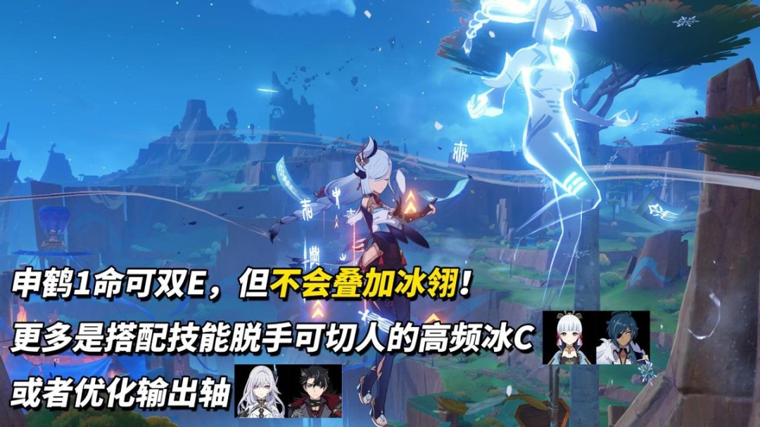 申鹤1命双E、6命普攻重击不消耗冰翎。但需要提醒一下各位,申鹤直接双E并不能叠加冰翎上限,一般更推荐类似神里绫华这种“大招脱手+极速消耗”的角色(jiaose),对丝柯克则只(zhi)有(you)0命和6命的区别;