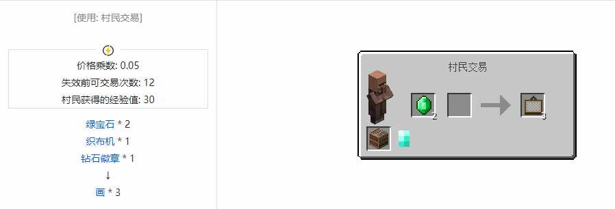 大师级别的牧羊人村民会以 2 个绿宝石的价格(ge)出(chu)售 3 幅画。