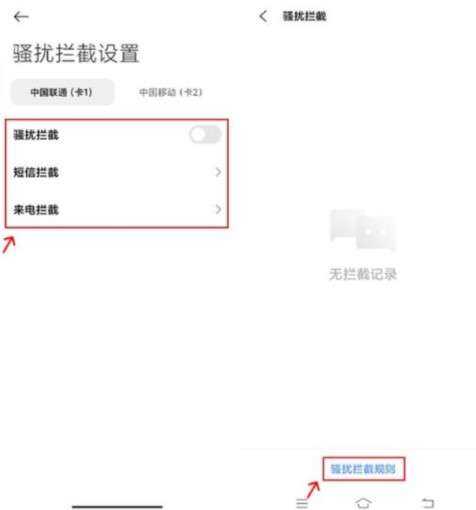 4、进(jin)入后閞晵骚扰拦截的开关,自定义短信拦截和来电拦截的规则(ze)即可(jike)。