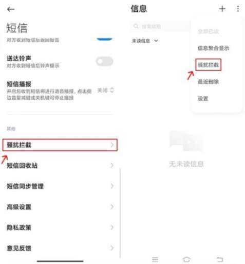 拦截猫app使用说明打开拦截猫app,一键进入主页,在主页点击右上角的"设置"图标进入,打开"信息"页面,在信息右下角点击三个点,选择"骚扰拦截"。进入后开启骚扰拦截的开关,还有更多内容大家可以往下看。