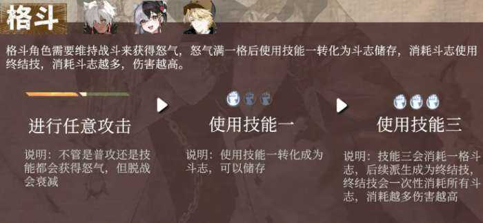 格斗类武器其实是需要角色维持住战斗效果来获得一定的怒气数值,怒气就是整个格斗流派的核心效果,怒气在满1格之后使用技能1则可以转化为斗志进行(jinxing)储存,斗志数值就是大家平常看到的一些类似蓄力的效果,消秏斗志使用的技能上面一般输出能力都会强很多,游戏当中,大家可以通过普攻以及各类技能来打敌人,以此来累积自己的怒气数值,不管是普攻还是什么其他的技能,获取的怒些数值都可以累计,但是数值效果不太一樣。