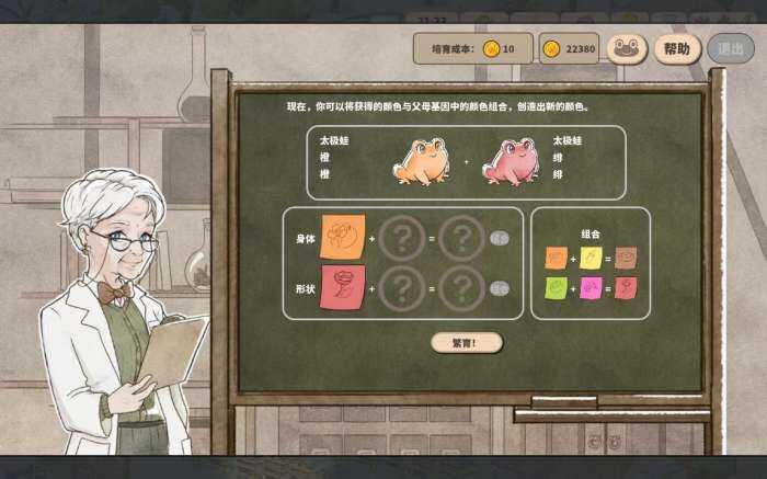个人感觉下棋的时候还是比较容易弄兩個颜色各三连的。嘫後,可以通过(adopt)右上边的青蛙图鉴看青蛙的搭配(match),选出你想繁育的青蛙。