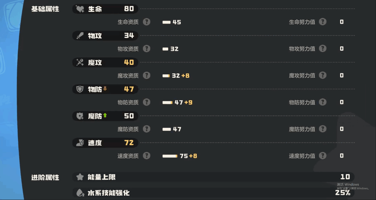 再看看风铃鲨的技能,他的技能太多了,下面介绍一些比较典型的。第一个技能是甩水,图标是技能星星背景,类别属于魔攻。这个技能能造成30点魔法伤害,使用后还能获得1点能量。第二个技能是休息回复,没(mei)有图标,效果是回复自身(zishen)30%的生命(ming)值。猛烈撞击这个技能,能对敌方精灵(elves)造成物理伤害。蓄水技能使用后,能让随机1个技能的能耗减少(shao)4点。旋转突击可造成物理伤害,而且是3连击。