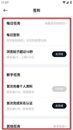 3、当各位进入到新的页(ye)面(mian)以后,映入眼帘的就是各种任务,包括签到(check in)、每日任务、新手任务、其他任务等(deng)等,只需要(need)每天都完成这些任务,那么你就能将等级快速提升了。