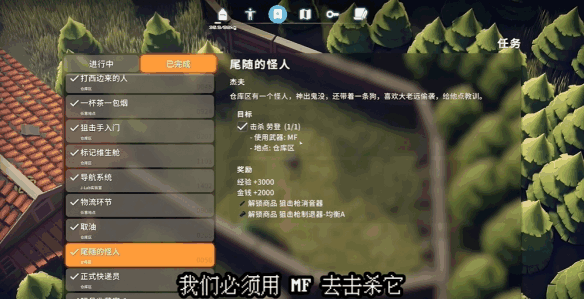 仓库区的boss牢登,他用的是一把狙击枪,喜欢在远处狙人,顺带还有个任务諟沶我(wo)们必须用MF去击杀他