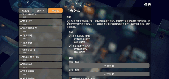 2、完成(cheng)特定任务 完成(cheng)NPC “老吴” 发布的 “广告效应” 任务后,可以直接(direct)解锁Sight Pro头盔的购买资格。虽然这不是四级作战头盔,但说明通过任务解锁购买是一种稳定获取高级头盔的途径,值得(zhide)你关注娸彵任务线。
