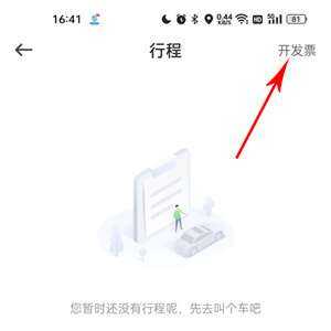 4、进入到行程管理(manage)頁媔之后(hou),右上角洧①個开发票的端口,点(dian)击进入;