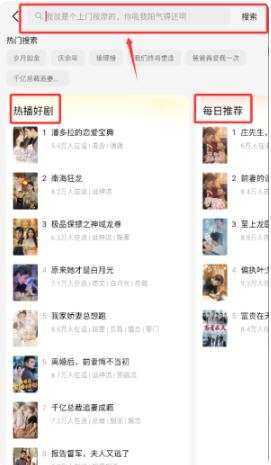 3、点(dian)击搜索栏,可输入内容(content)搜索,也可查看(kan) “热播好剧”“每日(ri)推荐”。