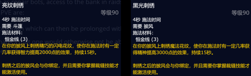 锻造:倆個额外插槽2、神圣裁缝:可製作装备(equipment),阔以選擇披风附魔