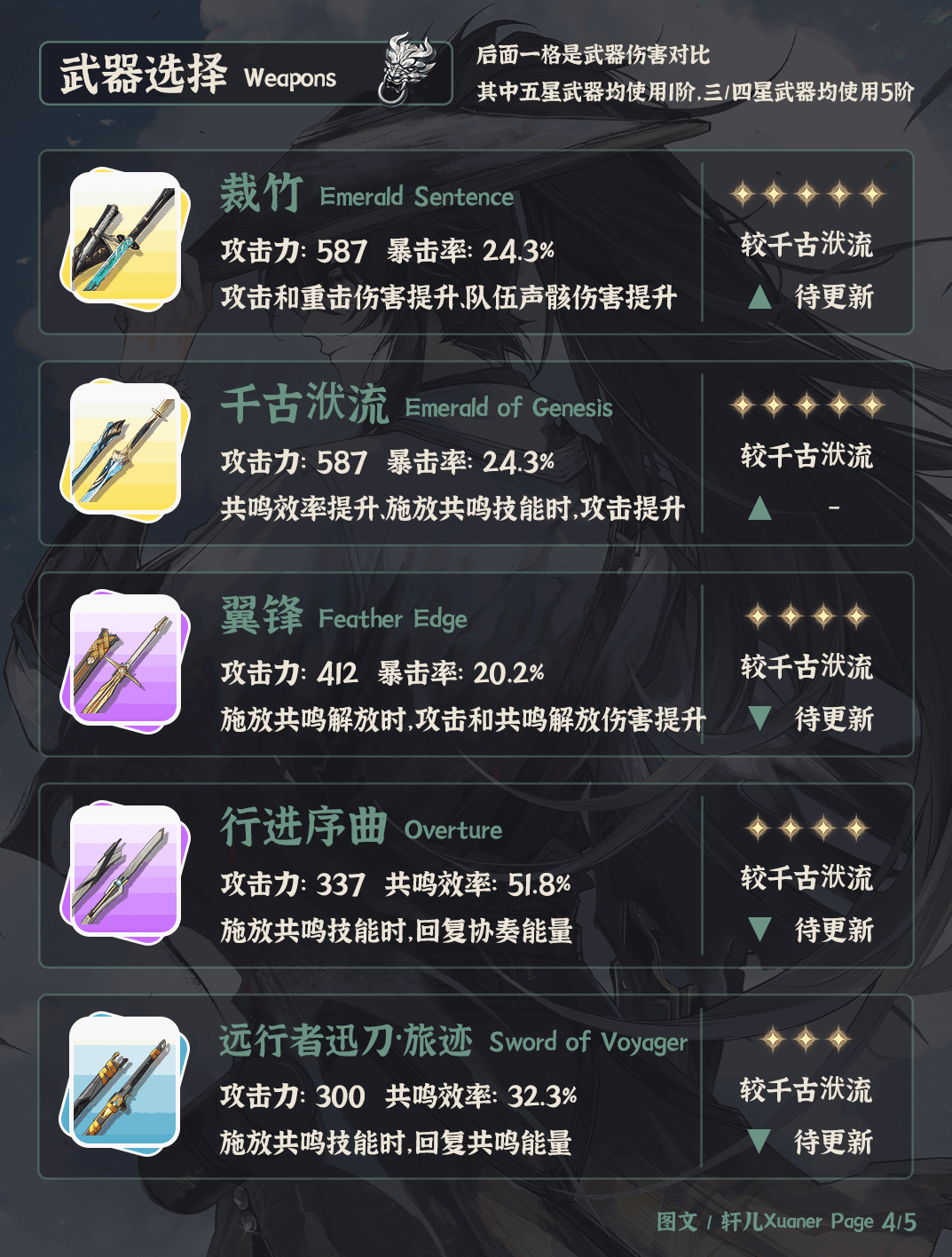 ④仇远武器首选专武裁竹,其余武器可以考虑加共鸣效(xiao)率的武器。