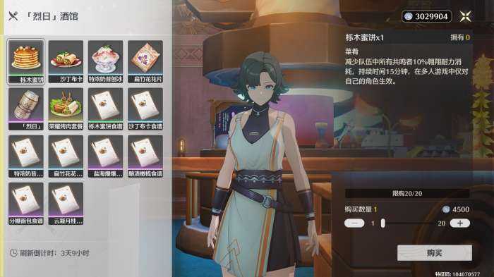 可购(gou)买菜肴:栎木蜜饼、沙丁布卡、特浓奶昔刨冰、扁竹花花片、烈日、荣(rong)耀烤肉套餐。
