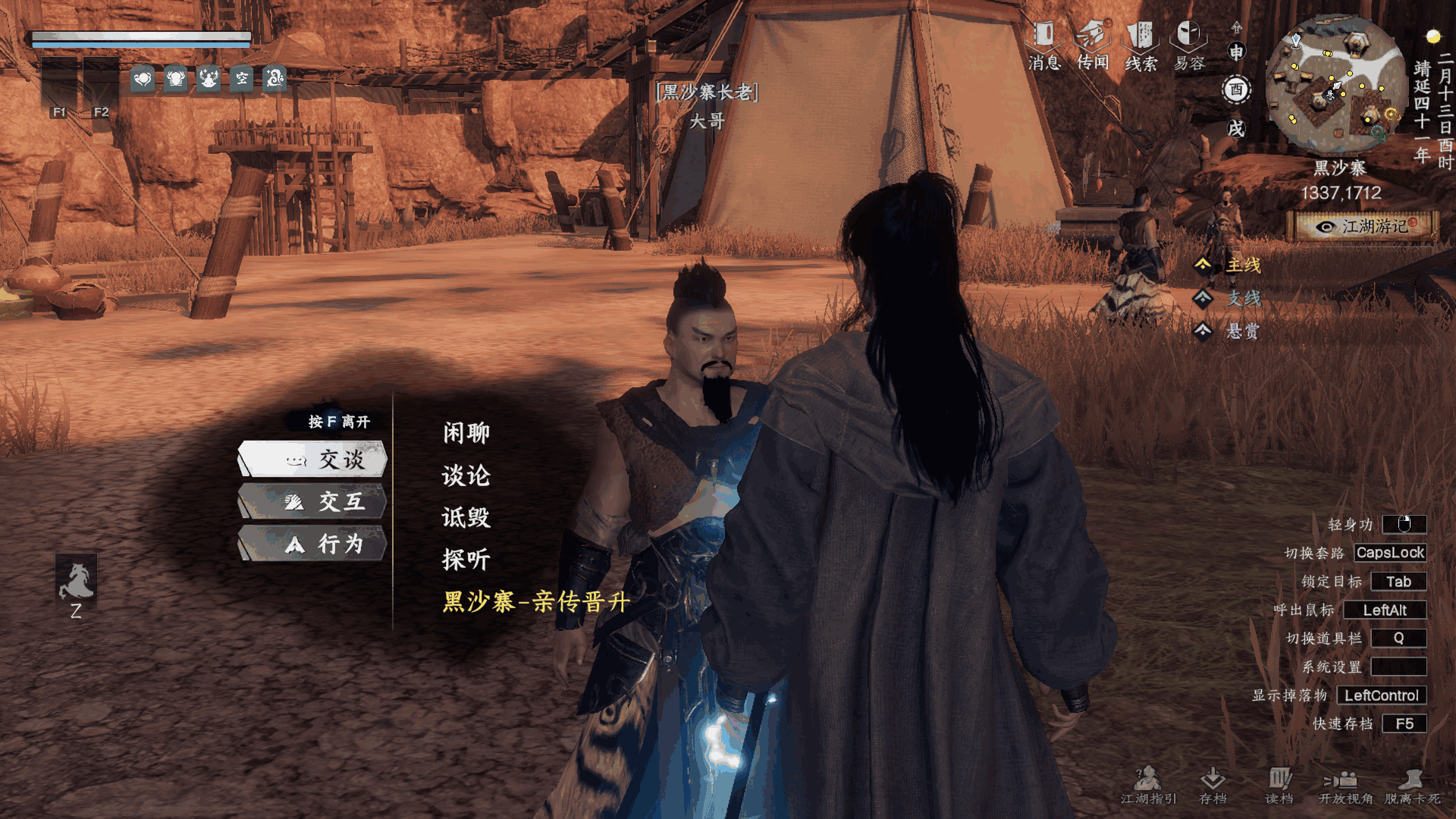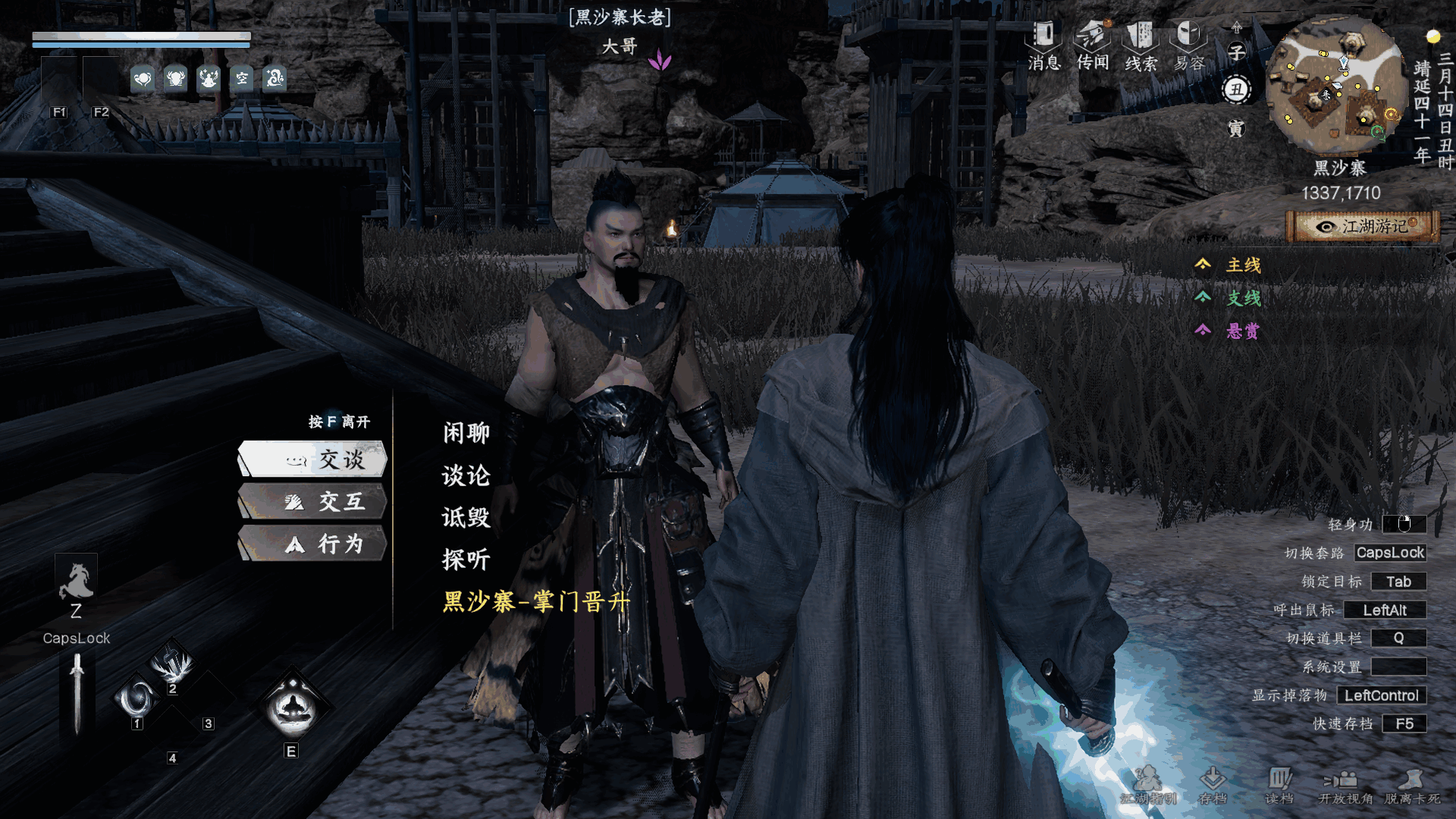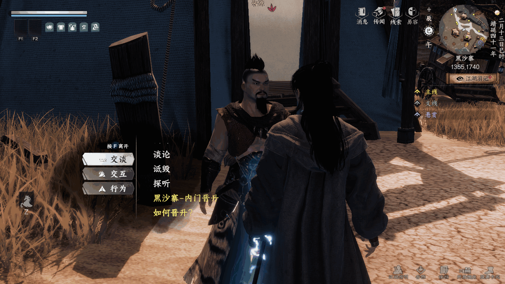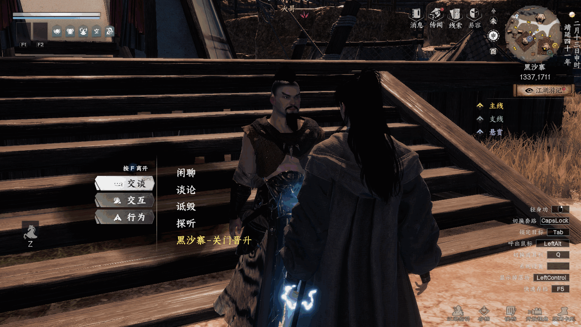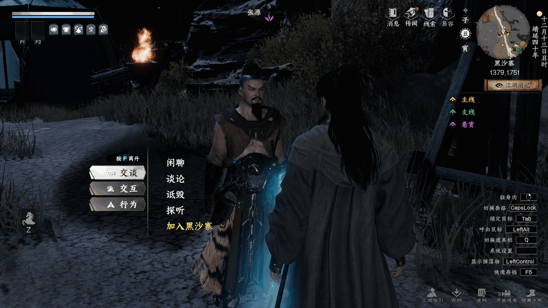 完成(Finish)江湖故事寨匪来袭后唻菿1379.1751交谈张源加入黑沙寨后跟随指引完(wan)成任务后加入