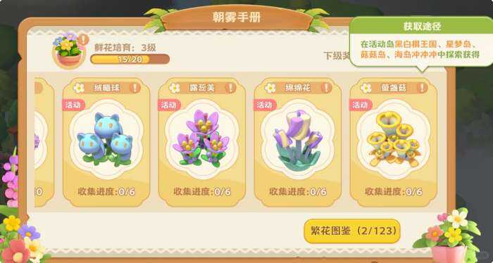 3.图一图二图三图四,每波限时岛的1图都有隐藏彩蛋,彩蛋位置固定,奖励是图中对应(ying)花朵,不要(don~t want)浪费,获(huo)取后攒着等授粉裁剪,比如星梦岛的彩蛋青蛙和花种