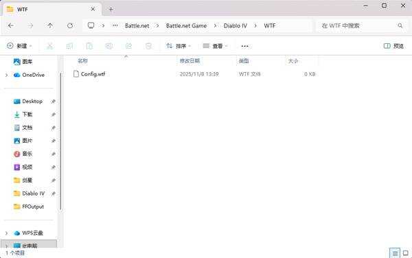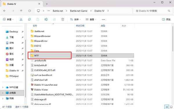 暗黑4国服反和谐教程(1)在游戏安装(anzhuang)目录下创建WTF文件夹。