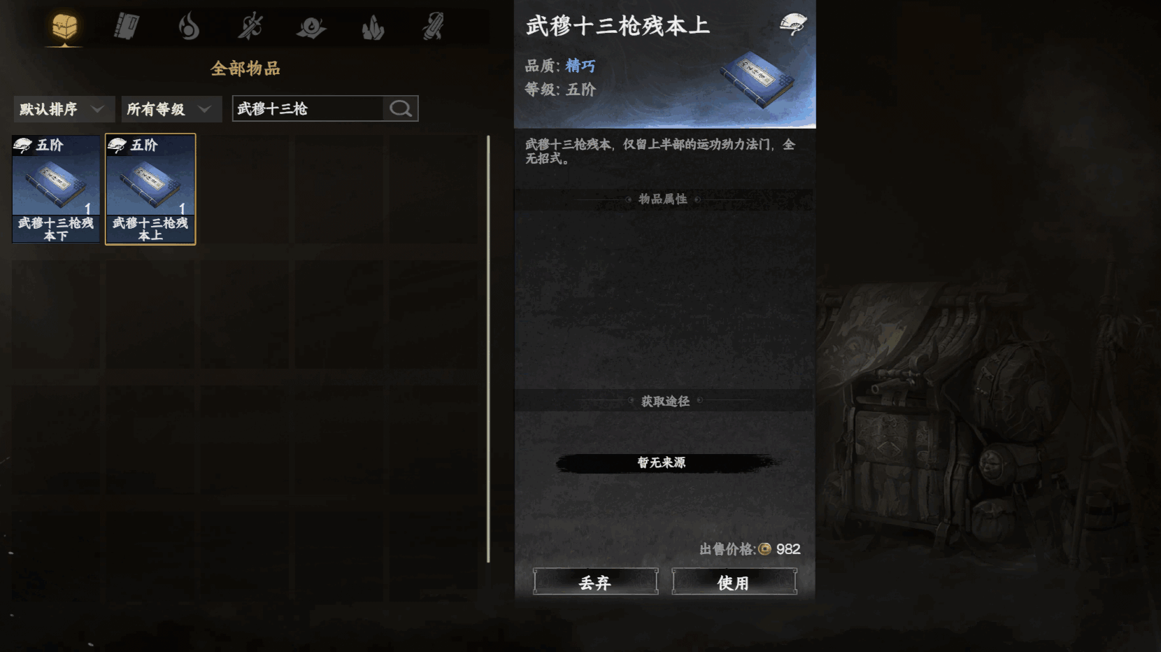 背包使用獲得地级枪法武穆十三枪
