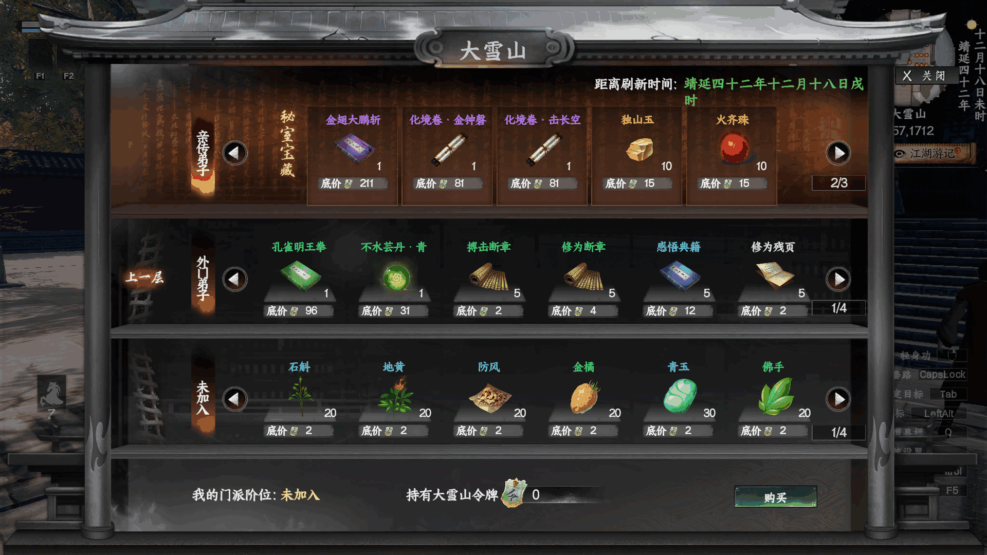 不夜京贡献堂主亲传弟子刷新獲得,大雪山贡献堂主亲传弟子刷新獲得