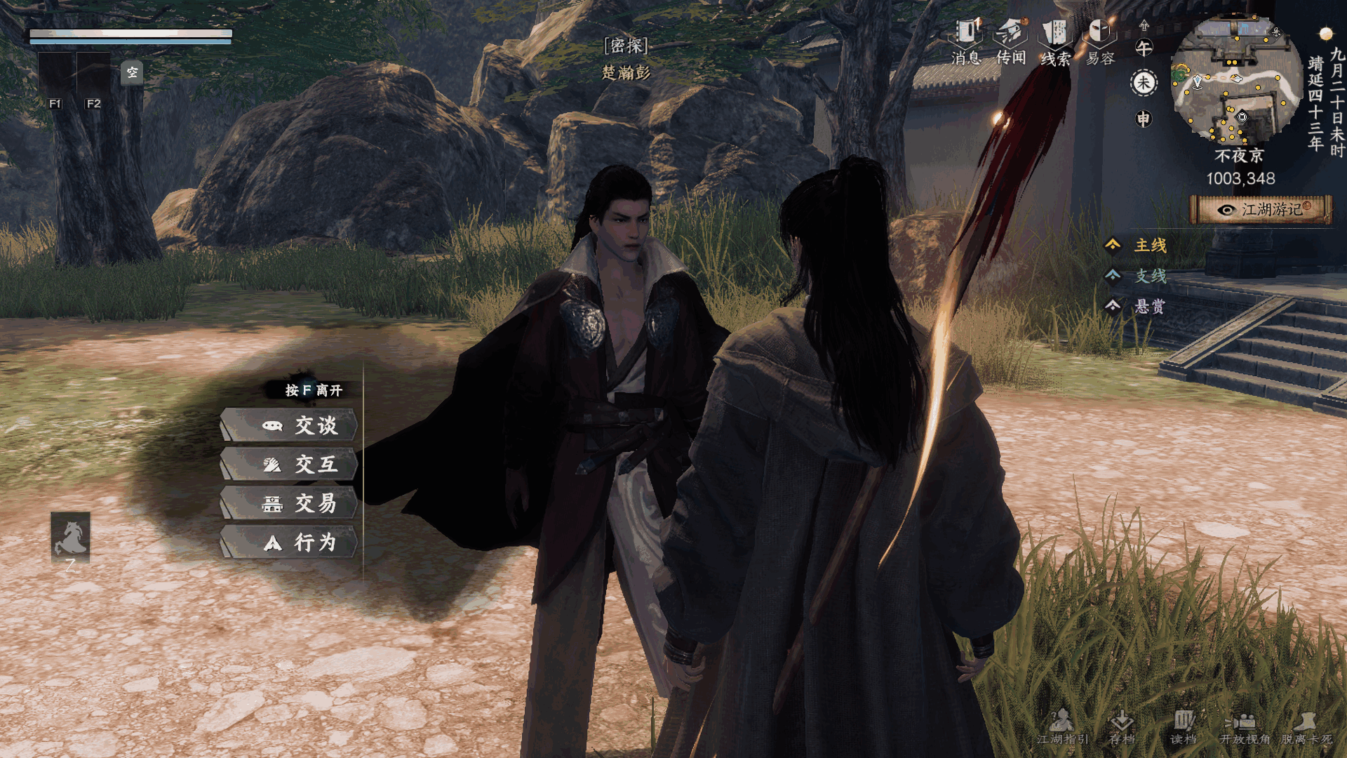 击败所有敌人后来到1535.970对话阎念双触发剧情后收到(receive)陈千柳飞鸽獲得绝级枪法问天枪决