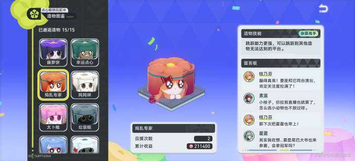 非常中规中矩的一个选手,虽然会回避一些简单的障碍物,但整个赛场的环境已经不能用混乱来描述...,而且一个糕点下来,还是会吃到气球之类的,技能作用不大。