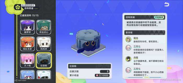 没想到我会把汤达人放(fang)在(zai)这个位置吧?纸面数据和实际情况是有一定差距的,汤达人其实非常稳健,针对它用糕点会比用垃圾靠谱得多,但有个缺点,掉出前3,后(hou)面想追上其实挺难的,人家都不屑扔道具(daoju)给你了。