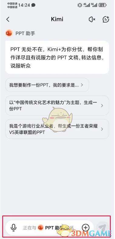 目前 DeepSeek 本身不能直接生成 PPT,需要搭配其他工具。这里以 Kimi + 的 PPT 助手为例(当然,也有其他类似的工具可供选择)。當你得到滿意的 DeepSeek 大纲后,复制大纲内容,然后打开 Kimi + 的 PPT 助手,将大纲粘贴进去。粘贴完成后,稍等一会儿,就会出现 “一键生成 PPT” 的选(xuan)项。