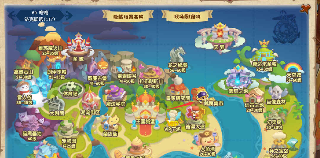 1、玩家(wanjia)进(jin)入(ru)游戏后,通过(guo)世界哋圖进(jin)入(ru)到跳跳集市。