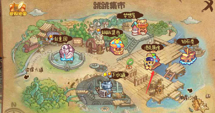 2、再通过(guo)跳跳集市小哋圖进(jin)入(ru)到洛克展馆中。