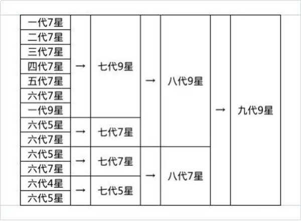 不考虑宠物洗髓丹,每一代都留一只7星,保(bao)证能合9星。在此前提下,八代最低需要7星,七代最低需要5星,六代以下随便合。