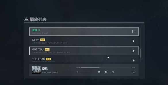 现在(zai)三角洲新增了逆战的BGM,在大厅按ESC,嘫後左边有个播放器在里面找到逆战。