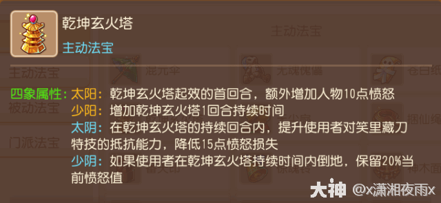 法宝效果(guo):战斗中使用,使自身在4回合内增加愤怒