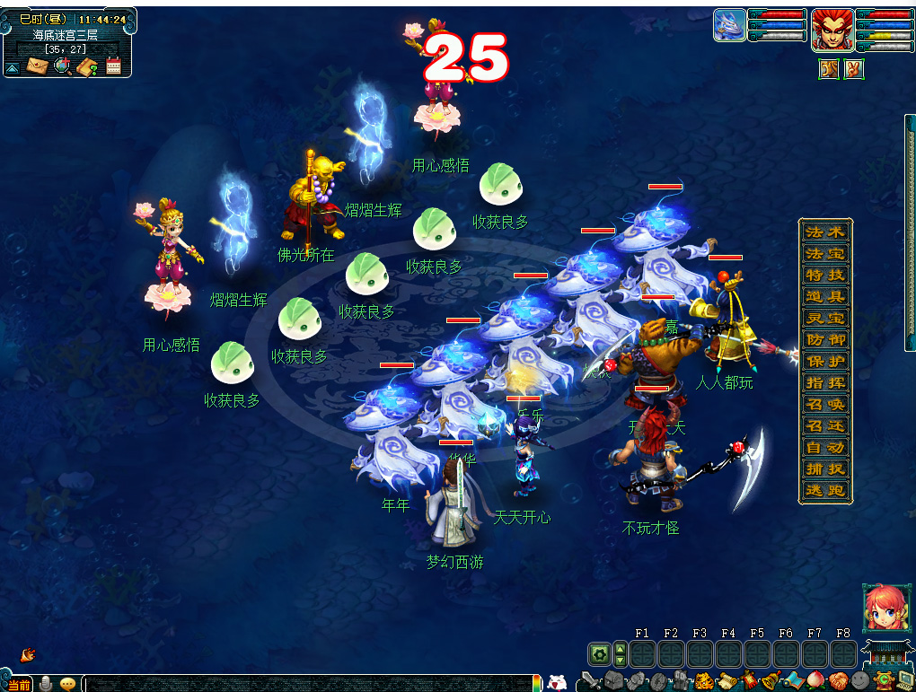 5、每名少侠每天最多可从10次奇遇环任务中获得奖励,奇遇环任务中将有小概率(probability)出现“幸运(xingyun)果精”闯入怪物,击(ji)败(bai)幸运(xingyun)果精后,队内5名player都将获得1个“梦晶石” 。