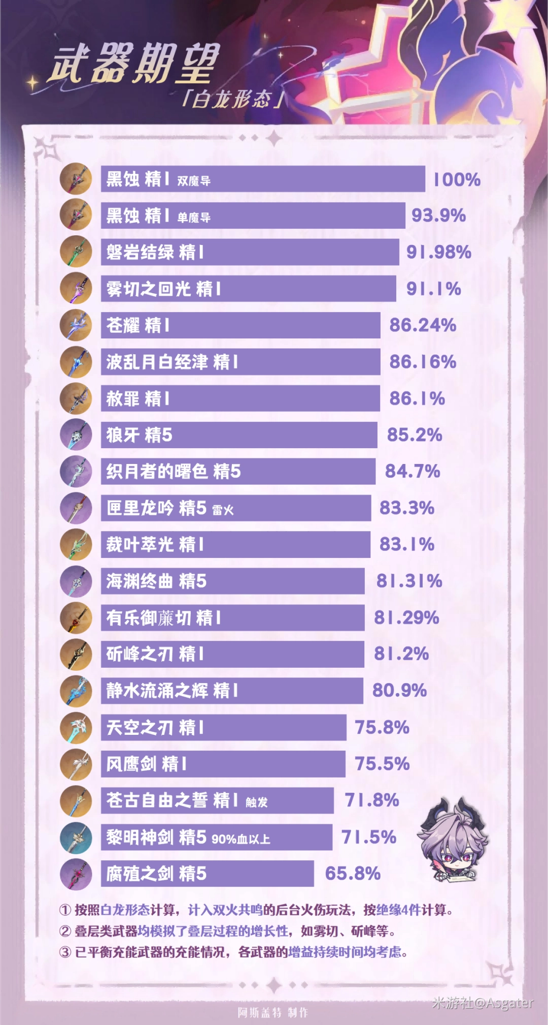 ①【苍古自(zi)由之誓】需触发反应才能叠层,黑龙的蒸发/融化玩法可选,副属性精通還能提高反应伤害。