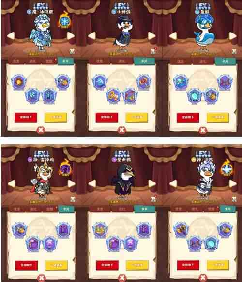 神·雷神鸡、魔·冰凤凰、鱼鹅、小帅鸽、堕天鸦