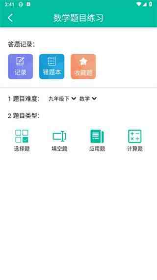 初中数学助手app刷题入口首先打开初中数学助手软件,进入到做题的页面中点击【刷题练习】,然后在该页面中选择题目难度之后点击一种【题目类型】,喜欢就看看下面的内容。