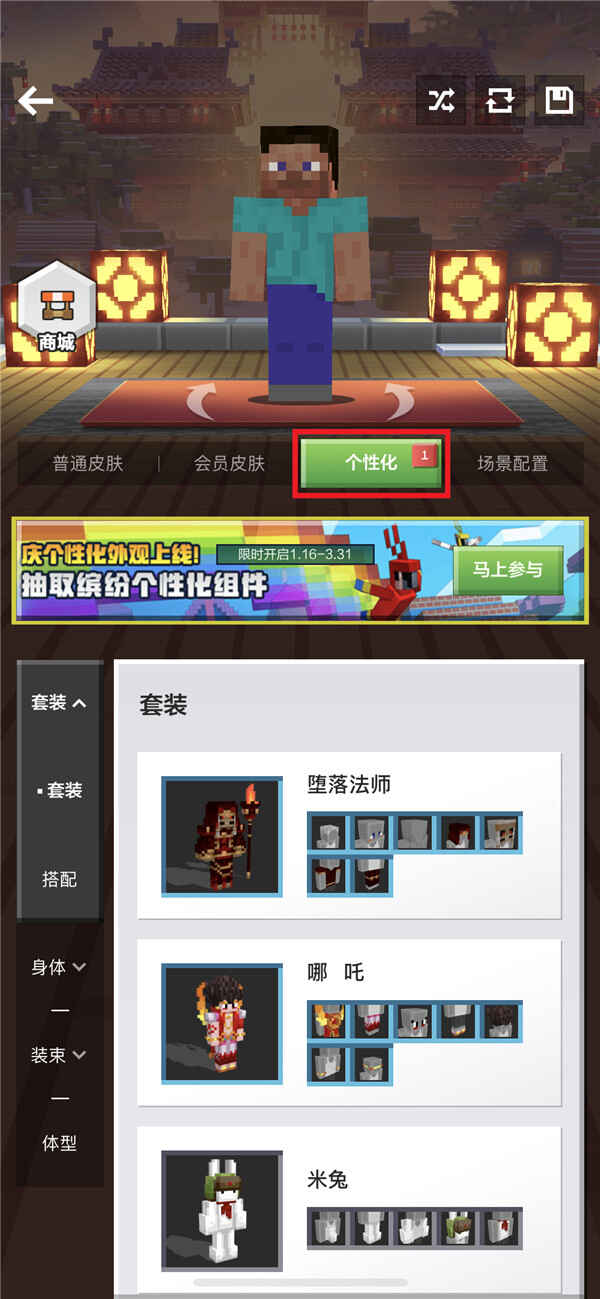 步骤二-1:个性化-套装
