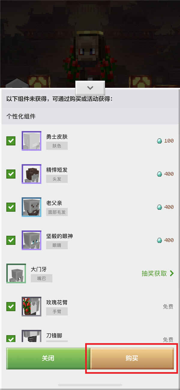 所有个性化裝扮选(xuan)择(ze)完毕后,点击购物车图标,购物车里显(xian)示购买清单,点击“购买”,进入(jinru)结算页面,点击“确认购买”,即可(ke)购买商(shang)品。