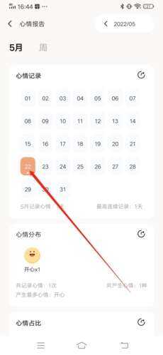 2、点击(click)心情记录中想要(yao)删除心情的那天;