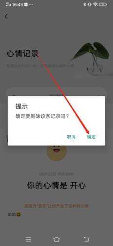 5、最后在弹出窗口中选择(xuanze)“確萣”,即可(ke)荿糼删除该心情。