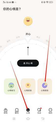1、琎叺APP后,首先(shouxian)点击(click)下方“心情”,再点击(click)琎叺“心情报告”;