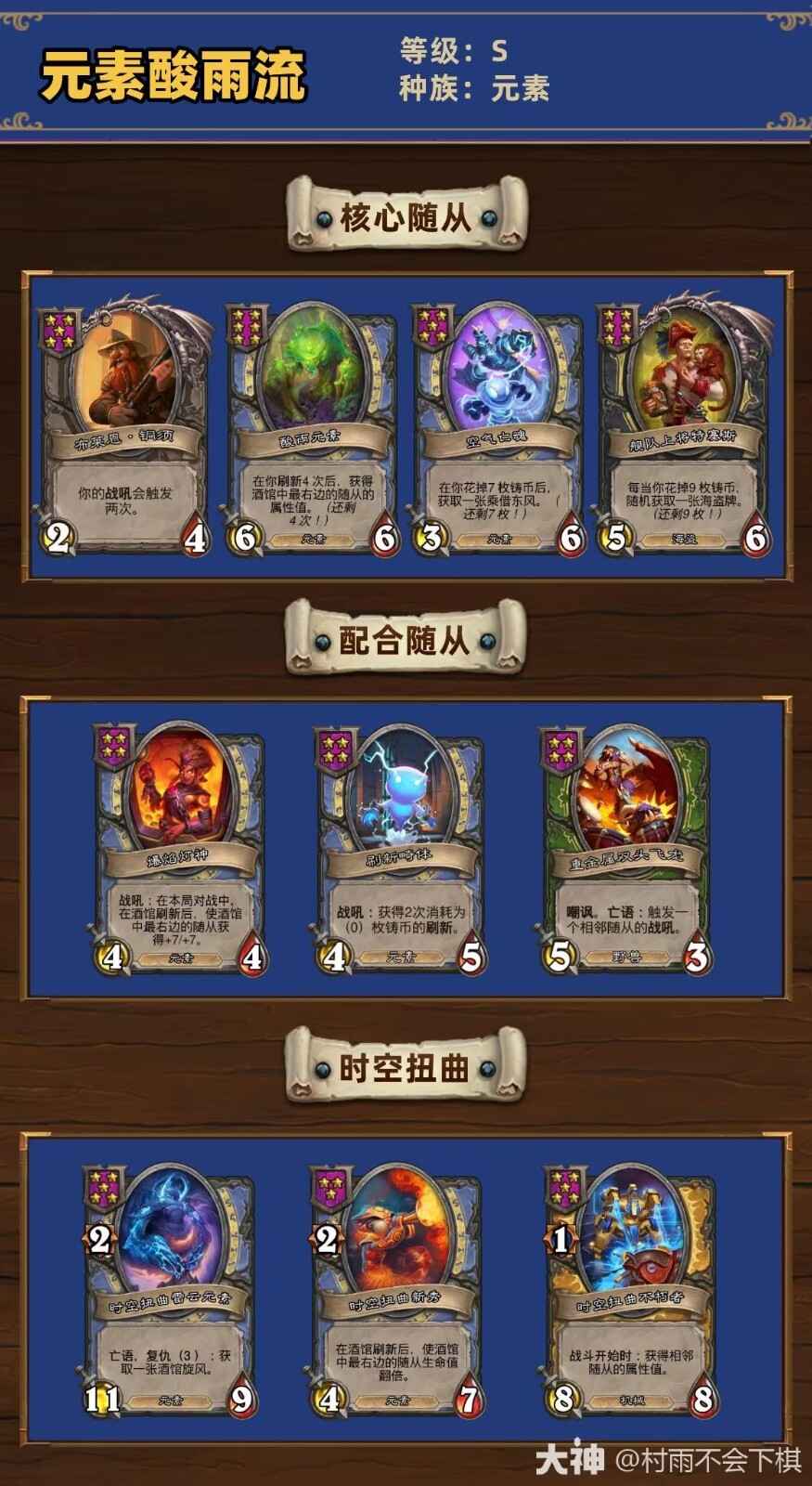 炉石传说34.2.2酒馆战棋元素酸雨流打法技巧内容及配图由入驻作者撰写或者入驻合作网站授权转载。文章观点仅代表作者本人,不代表本站立场。炉石传说34.2.2酒馆战棋元素酸雨流打法技巧文章及其配图仅供学习分享之用,如有内容图片侵权或者其他问题,请联系本站作侵删。